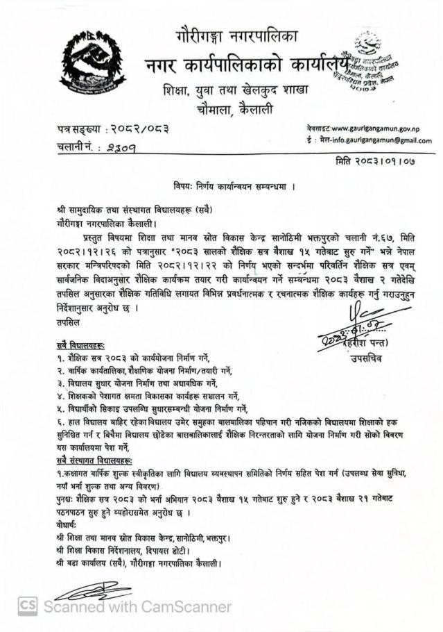 निर्णय कार्यान्वयन सम्बन्धमा ।
