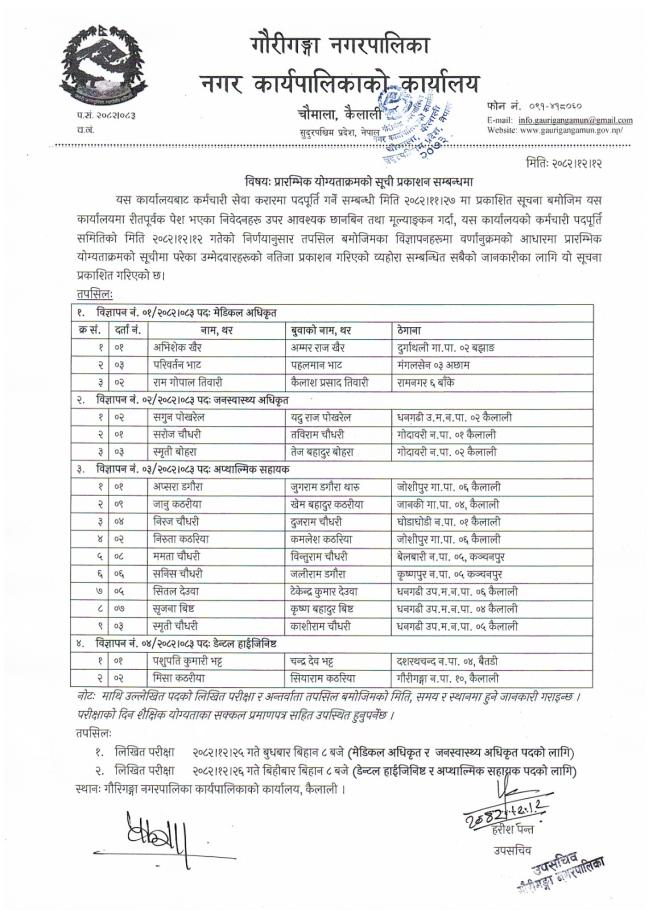 (1) info.gaurigangamun@gmail.com (2)info@gaurigangamun.gov.np