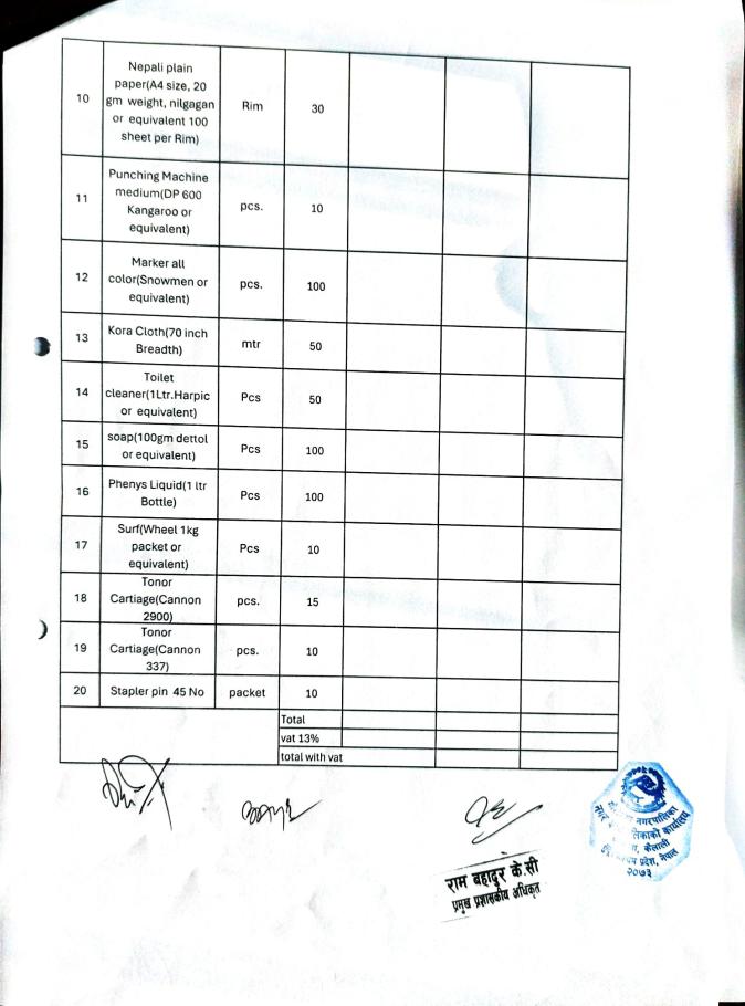 मसलन्द सामग्री खरिदका लागि दर रेट पेश गर्ने सम्बन्धी सूचना ।