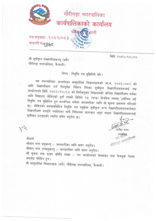 » लेखापरीक्षकको नियुक्ति पत्र बुझिलिने बारे ।