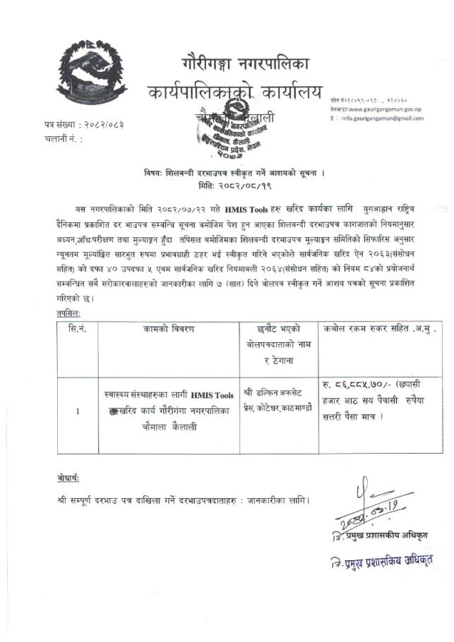 » HMIS Tools खरिदको सिलबन्दी दरभाउ स्वीकृत गर्ने आशयको सूचना ।