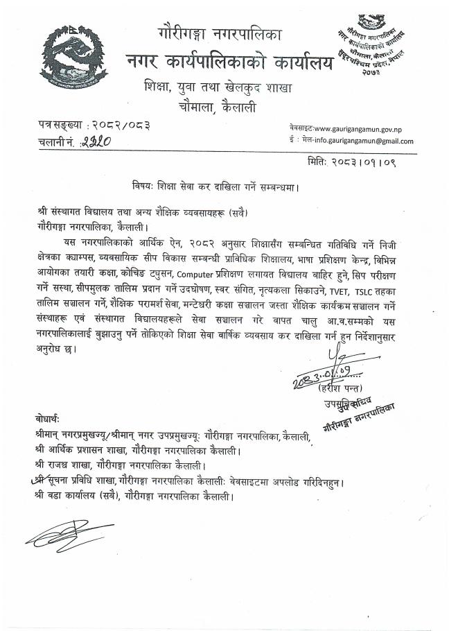 about शिक्षा सेवा कर दाखिला गर्ने सम्बन्धमा।
