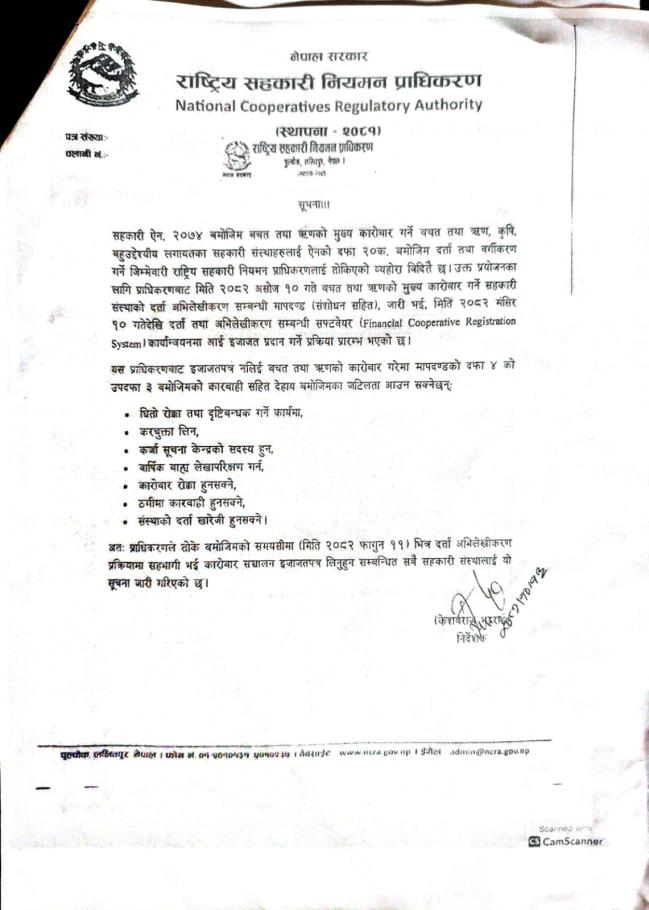 » सहकारी संस्थाको दर्ता अभिलेखीकरण मापदण्ड बमोजिम विवरण प्रविष्ट गर्ने सम्बन्धमा ।