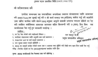 अति विपन्न परिवारका व्यक्तिहरुलाई सिलाई कटाई तालिम तथा मेसिन वितरणको लागी दर रेट पेश गर्ने सम्बन्धी सूचना ! !! !!!