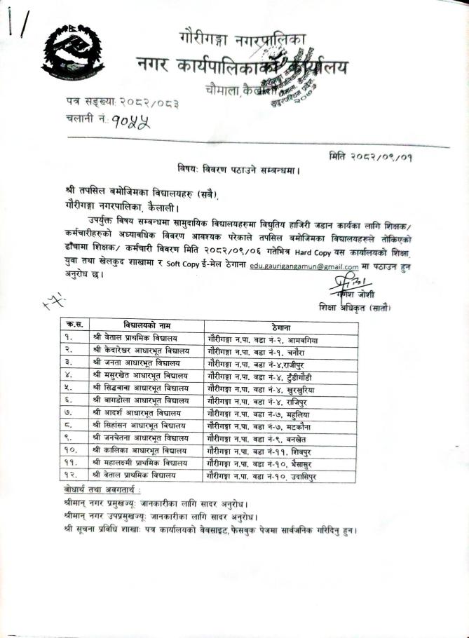 (1) info.gaurigangamun@gmail.com (2)info@gaurigangamun.gov.np
