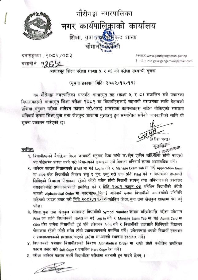 आधारभुत शिक्षा परीक्षा (कक्षा ५ र ८) को परीक्षा सम्बन्धी सूचना ।