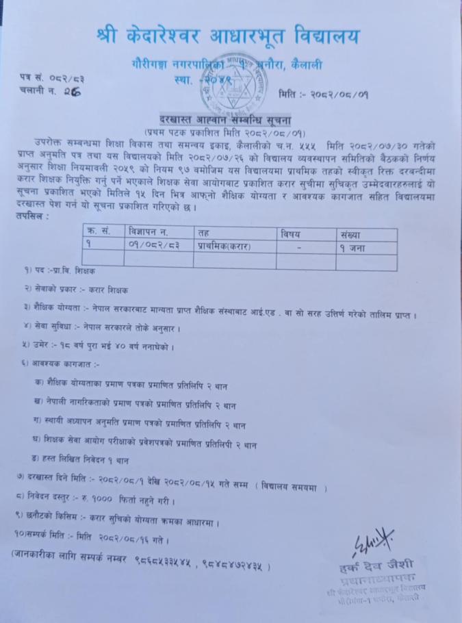 » दरखास्त आह्वान सम्बन्धी सूचना ।