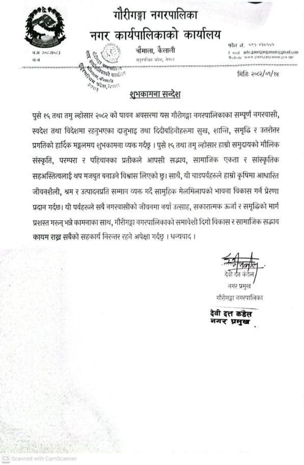 पुसे १५ तथा तमु ल्लोसार २०८२ को हार्दिक मङ्गलमय शुभकामना ।