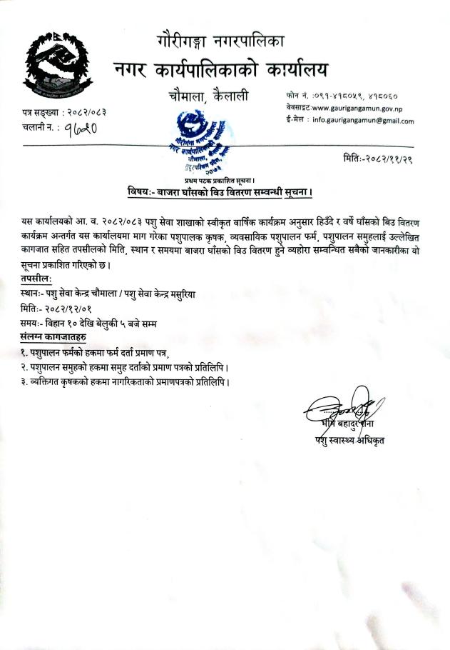 बाज्रा घाँसको बीउ वितरण सम्बन्धमा ।