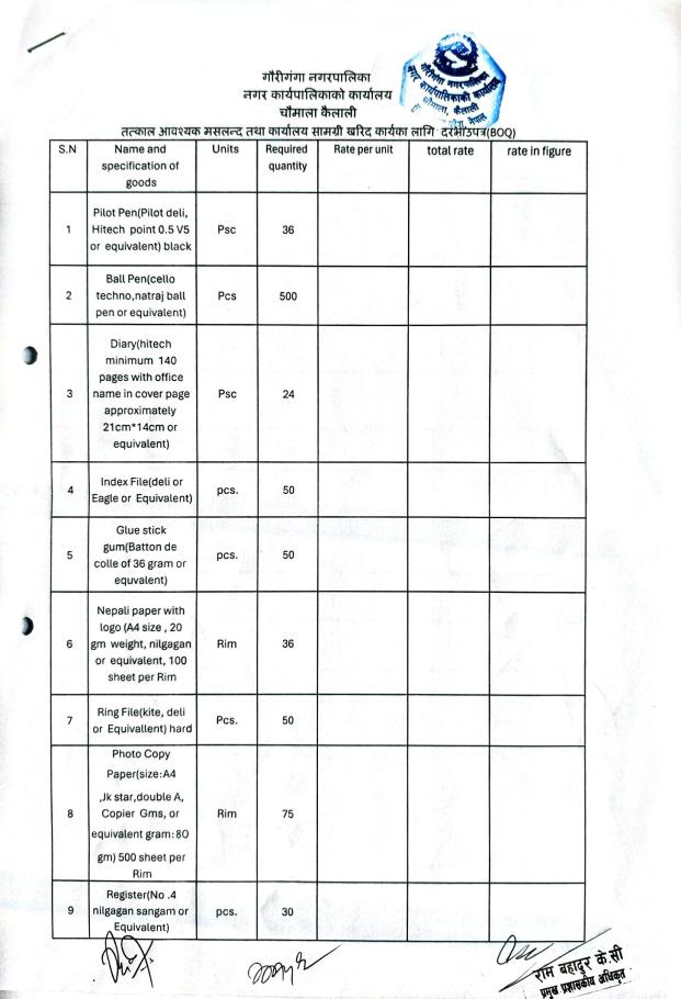 मसलन्द सामग्री खरिदका लागि दर रेट पेश गर्ने सम्बन्धी सूचना ।