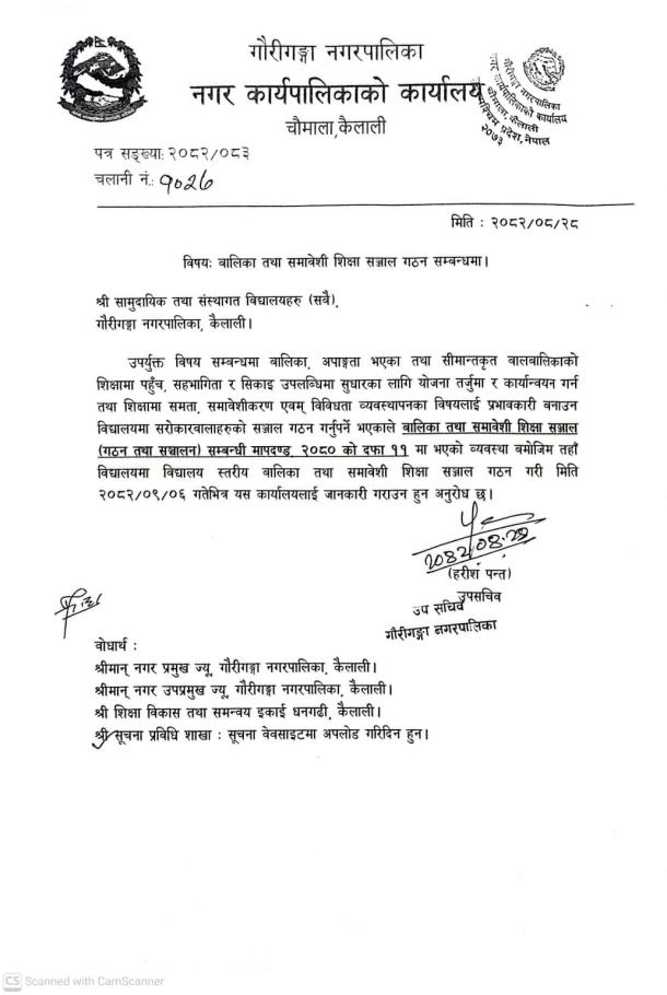 बालिका तथा समावेशी शिक्षा सञ्जाल गठन सम्बन्धमा ।