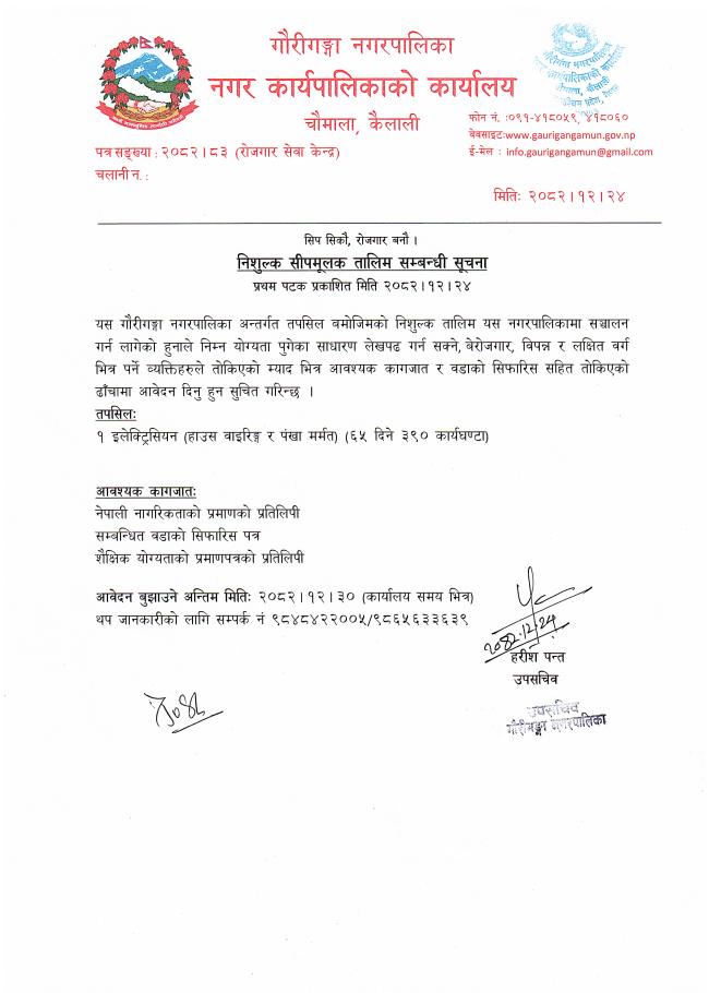 (1) info.gaurigangamun@gmail.com (2)info@gaurigangamun.gov.np